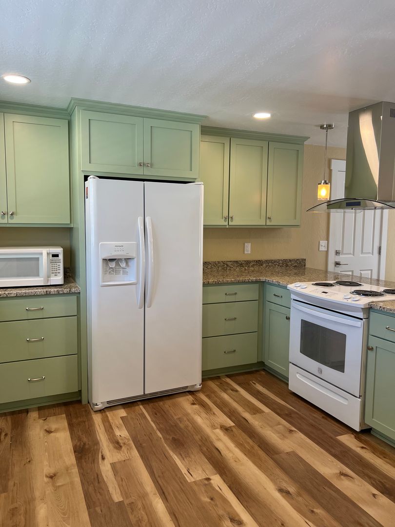 Enjoy easy living in this single story home recently updated with wonderful amenities. Upgrades include luxury vinyl floors, low maintenance landscaping, and quality fixtures and finishes throughout the home. The open floor plan features a large kitchen with views, granite countertops, new appliances and a great eat-at bar for casual dining or entertaining. Just off the kitchen is a laundry room with W/D hookups and additional pantry storage.