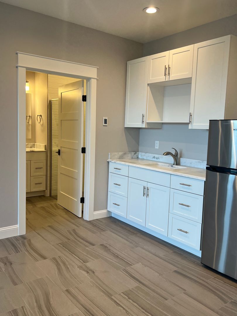 Downstairs is a self-contained suite with separate entrance, kitchenette, full bathroom and storage. This space could be used as a bedroom, recreation room or guest accommodations.