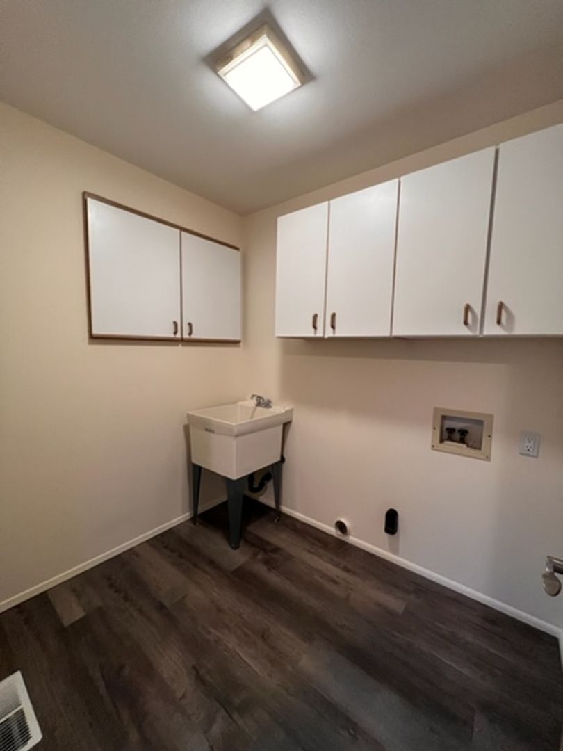 Two car attached garage with space to store your belongings and also have a work bench. All yard care and utilities to be tenant responsibility.