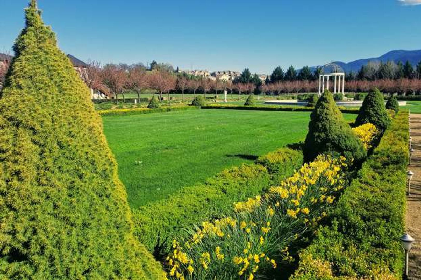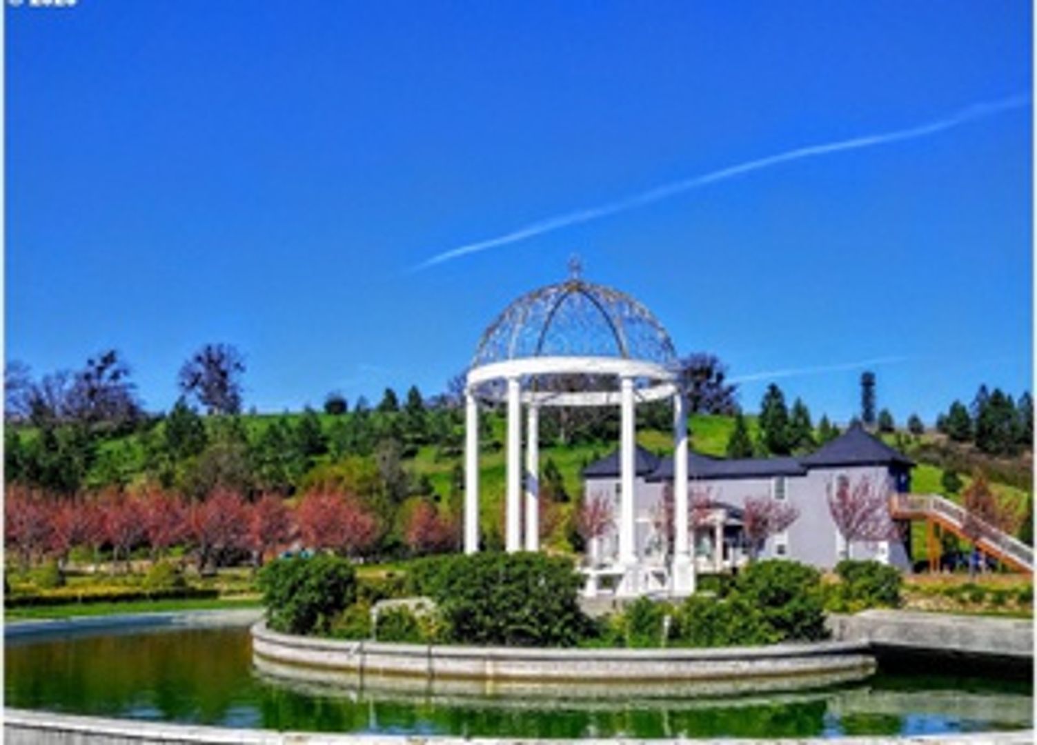 Outside your front door, enjoy the fragrance of the manicured rose garden and sounds of the grand fountain. Or take a stroll over to the creek that boarders the expansive grounds.