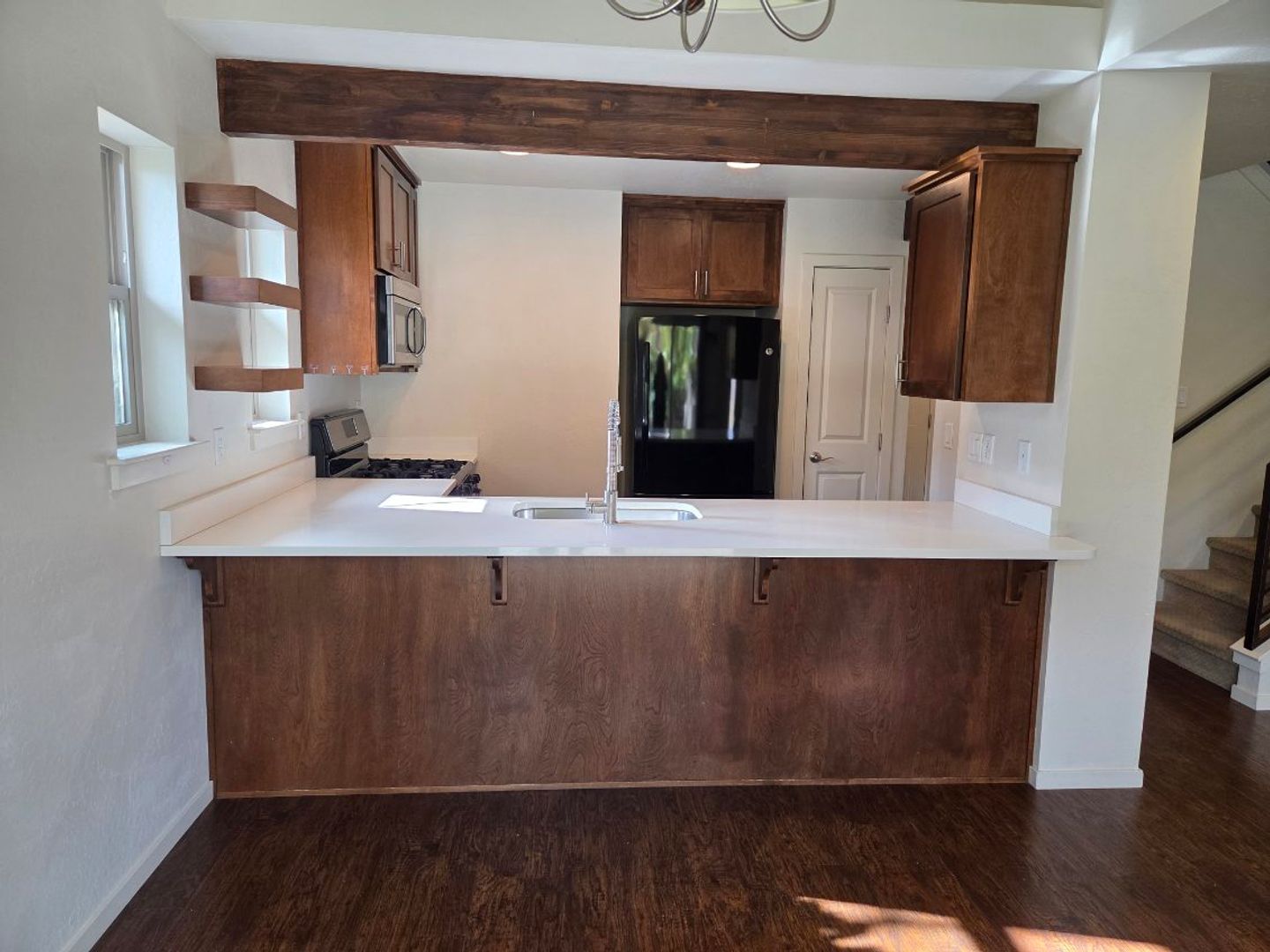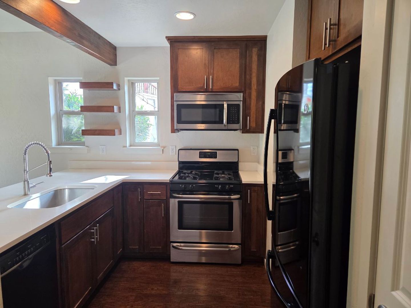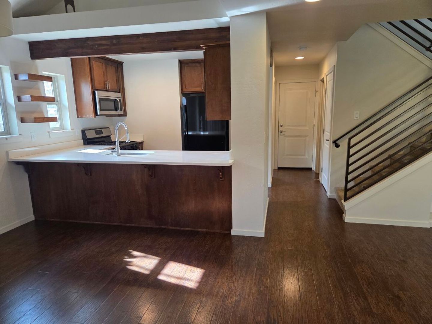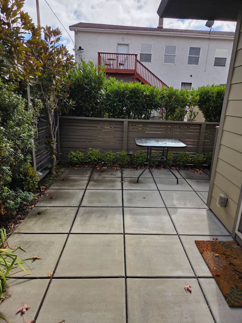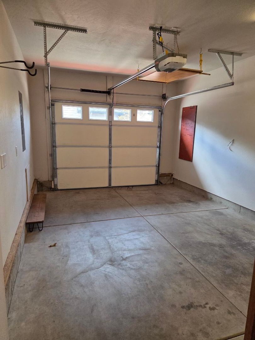 One car garage includes an electric car charging outlet, and an automatic garage door opener and one additional, uncovered dedicated parking spot alongside the garage. Central AC/Heat included. Dishwasher, microwave, refrigerator and gas stove/oven are included along with washer and dryer.
